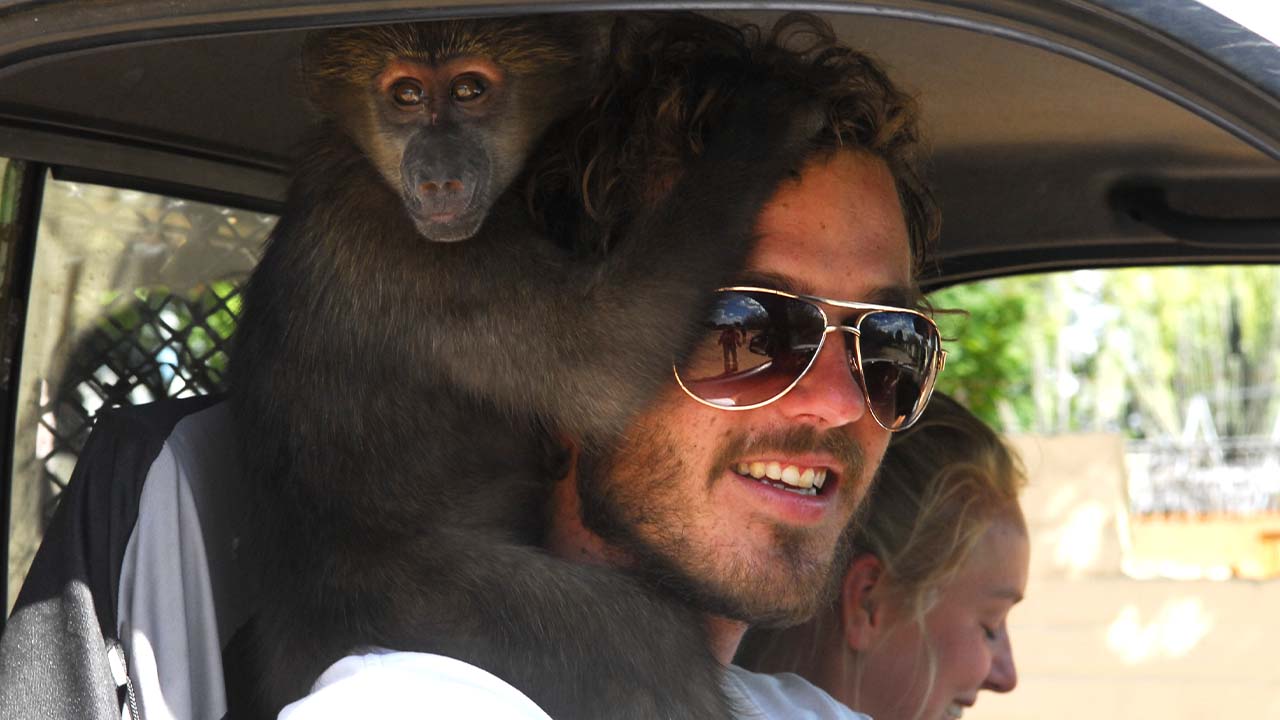Afrikanische Wildhunde, eine stark gefährdete Tierart, gelten als brutale Killer. Die Volontäre benötigen im Umgang mit ihnen gute Nerven, nicht nur wegen des ohrenbetäubenden Kläffens der Tiere und wegen ihrer oft unterschätzten Gefährlichkeit, sondern auch, weil sie als Futter bestialisch stinkende Eingeweide lieben. Andere haben es besser getroffen: Sie dürfen mit den entzückenden Baby-Pavianen im Pool plantschen. Die erwachsenen Paviane werden auf einer knochenharten Tour beherzt mit Milipap versorgt – ein traditioneller Maisbrei, der für die Affen pikanterweise mit Essensresten gestreckt wird.